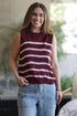 Add a pop of fun to your wardrobe with the Addie Sleeveless Sweater in a rich burgundy shade accented by light stripes. Perfect for layering or wearing solo, this playful piece brings cozy style without the sleeves getting in your way. Whether you're out and about or lounging in style, Addie keeps things bright and breezy!