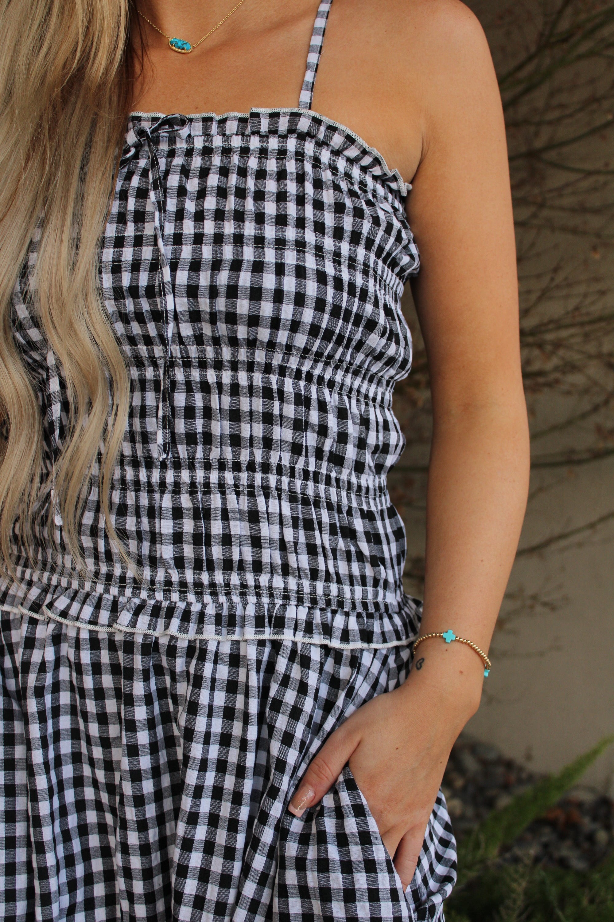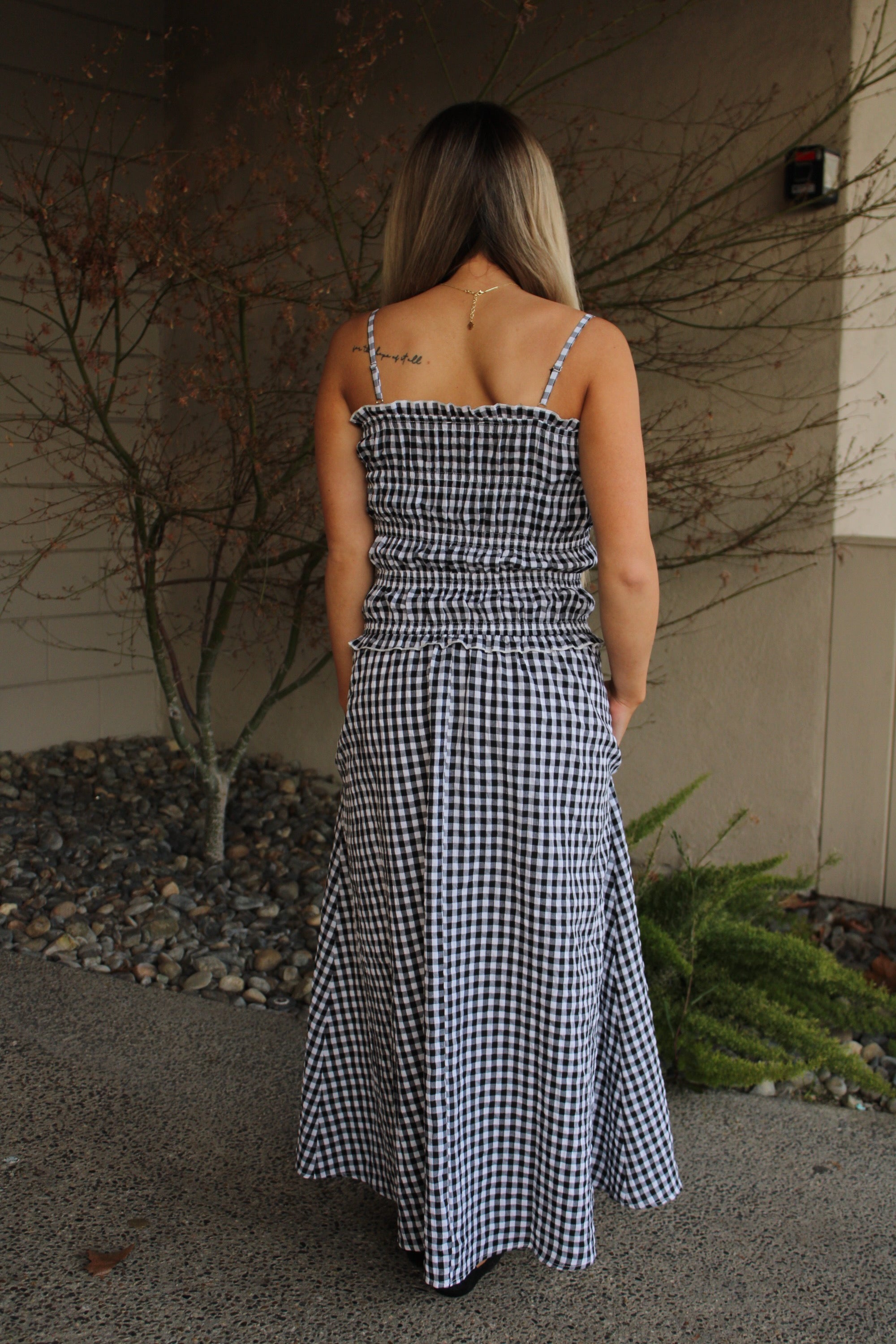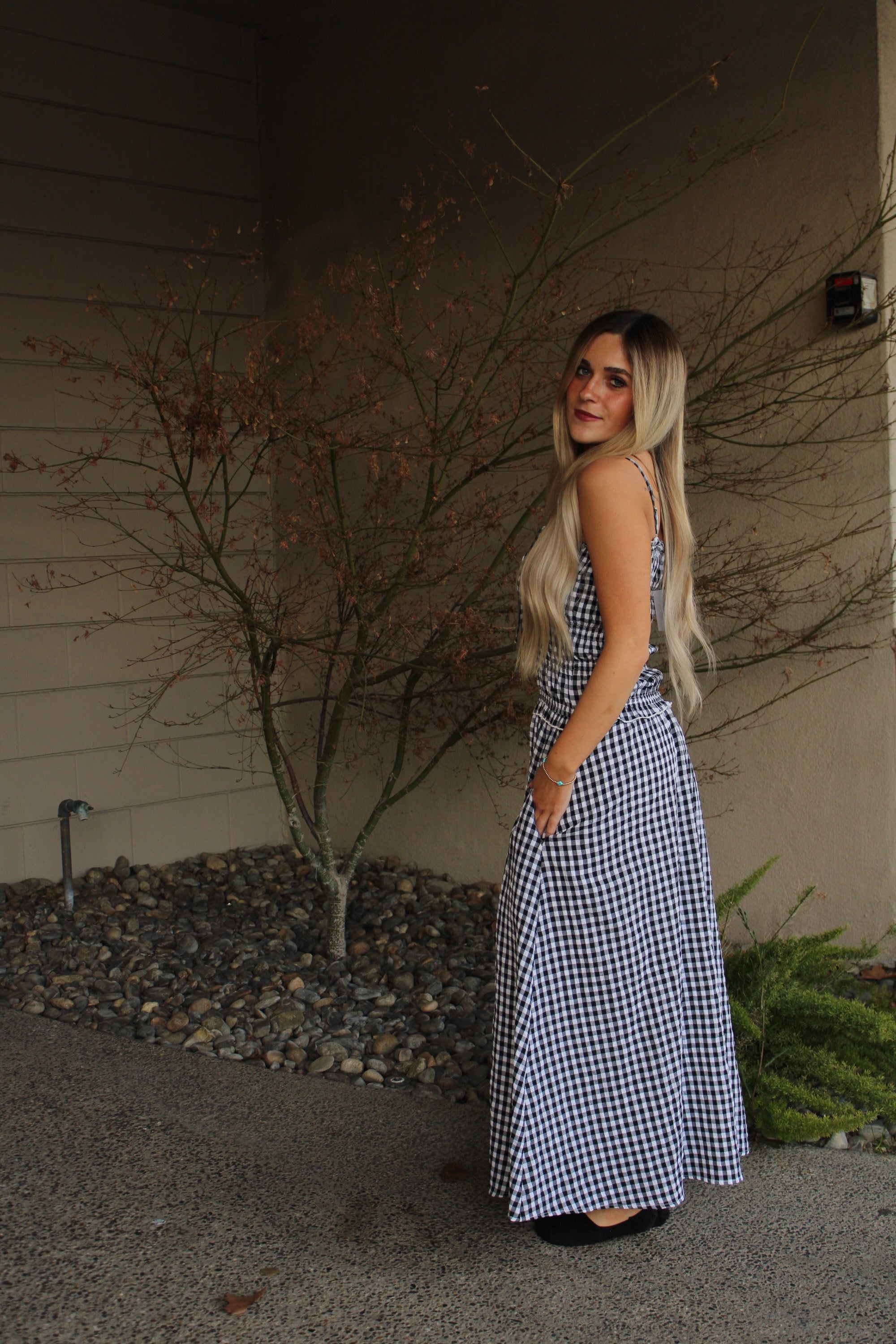 Meet your new wardrobe obsession: the Dylan Gingham Maxi Dress. This playful piece combines a classic black and white gingham pattern with a beautifully smocked bodice that hugs in all the right places. Whether you're heading to brunch, a garden party, or a casual night out, this dress delivers effortless style with a touch of whimsy. Comfortable, flattering, and endlessly versatile—what's not to love?