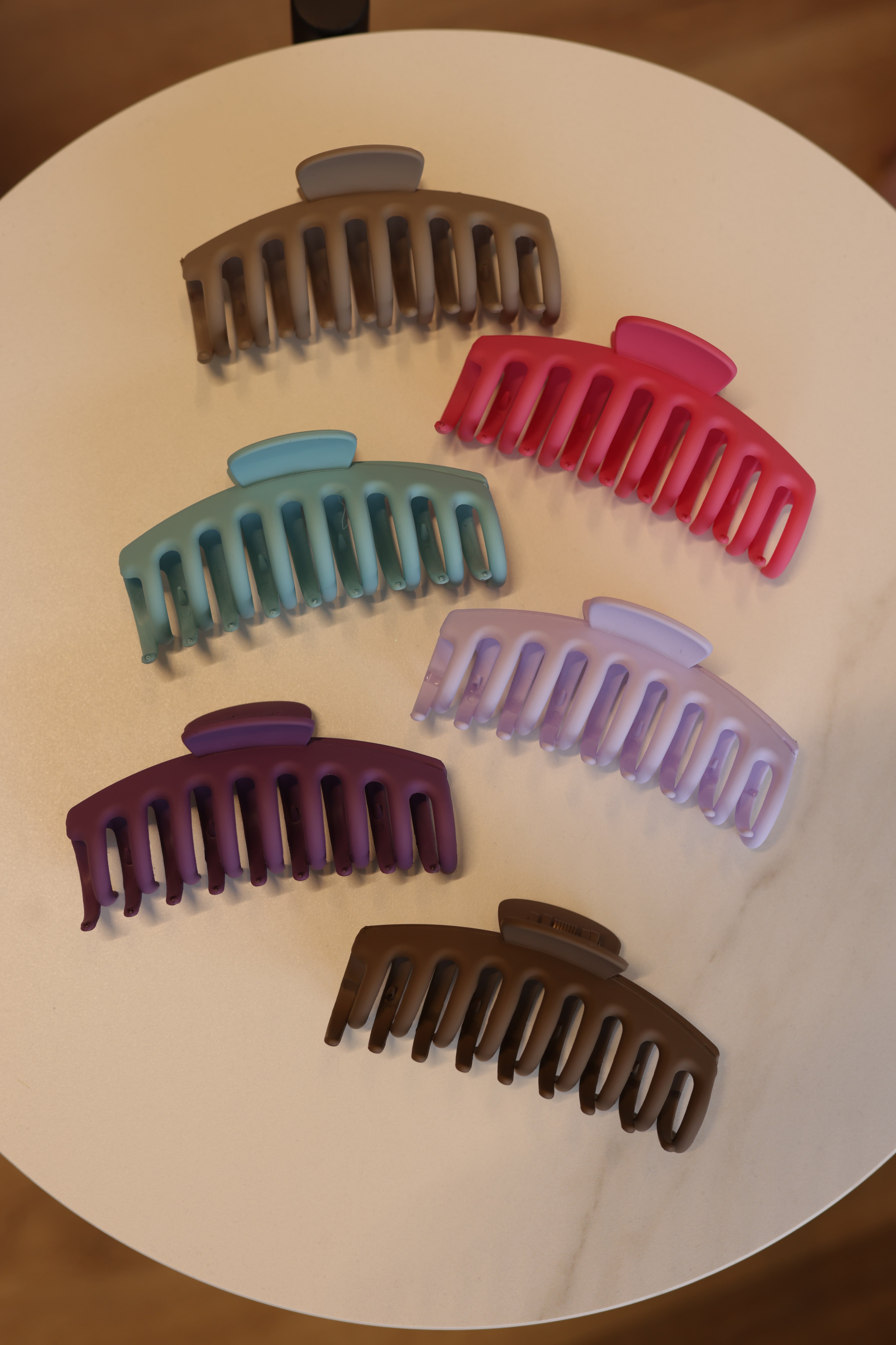 Add a pop of fun to your hair routine with our Oversized Claw Clips, available in multiple vibrant colors. These basic yet bold clips easily secure your hair while making a stylish statement. Perfect for keeping hair out of your face with a playful twist!
