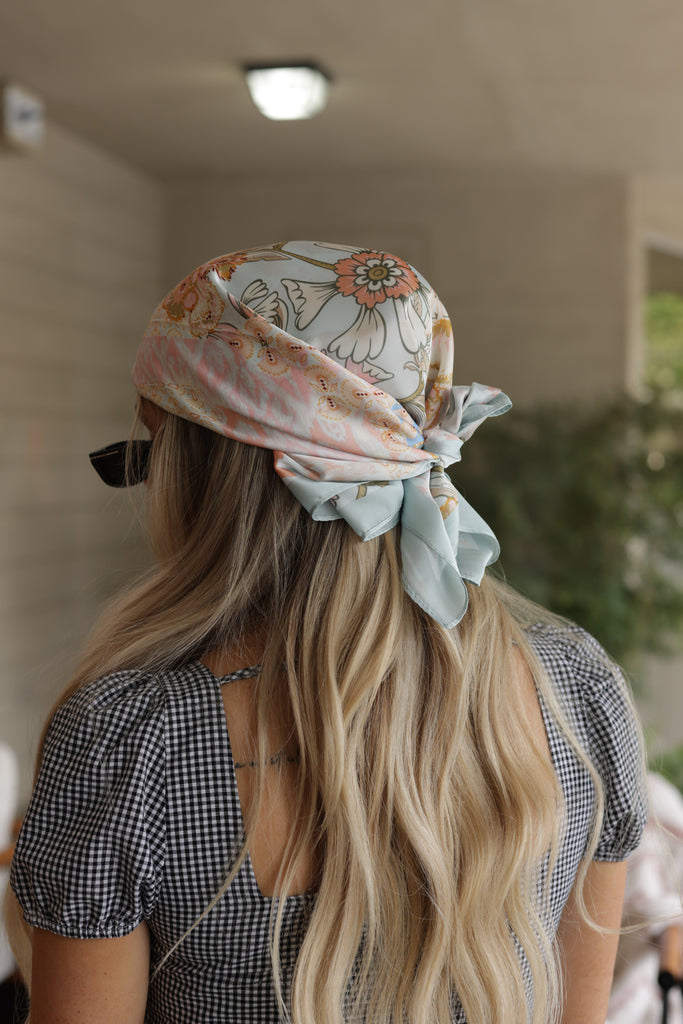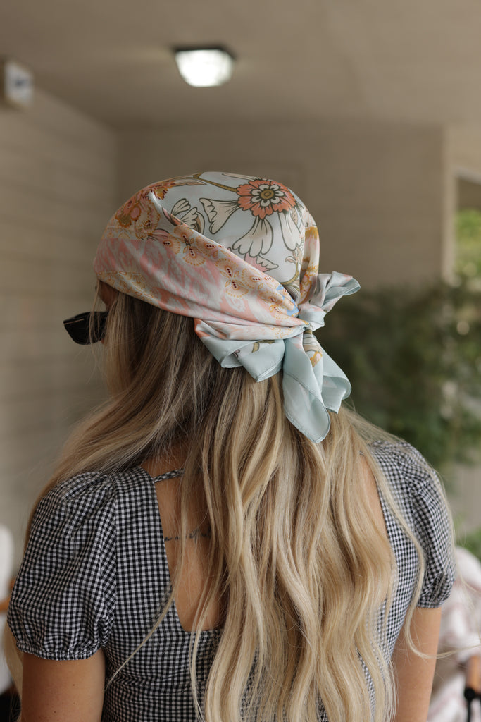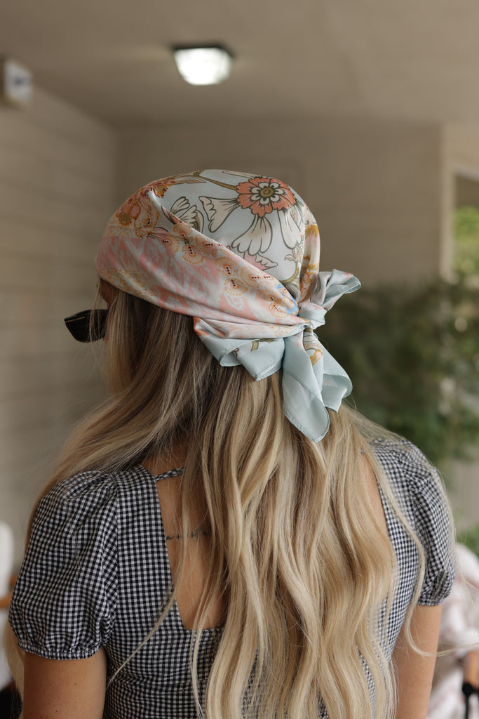 Add a pop of charm to your outfit with the Praise Bandana Scarf featuring a soft pastel floral print. Light and breezy, it’s perfect for tying around your neck, wrist, or even your bag to brighten any day with a touch of playful elegance.