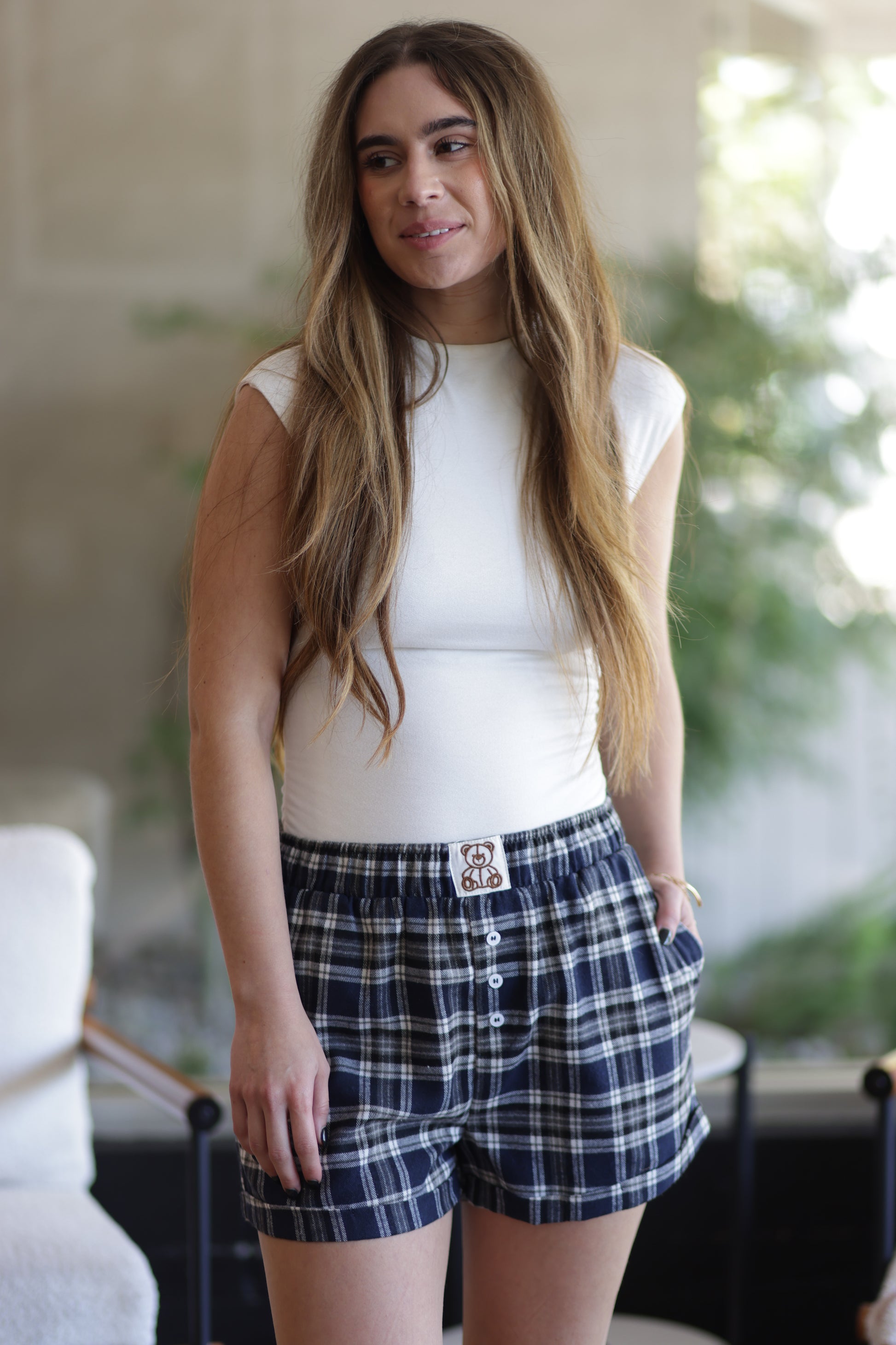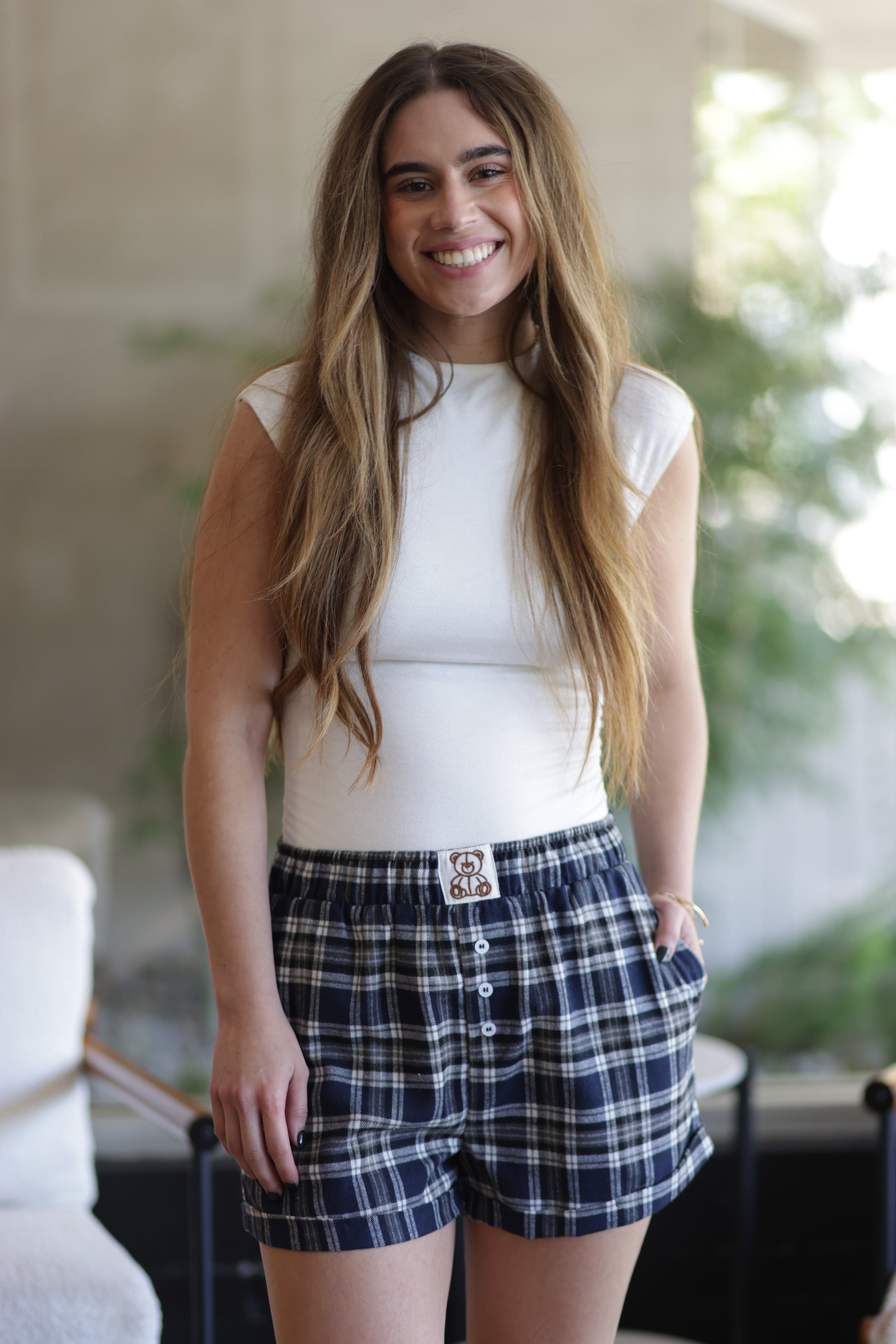 Stay comfy and stylish with the Monroe Boxy Shorts, designed just for women who love a playful twist on classic comfort. Choose between cozy brown/mint plaid or chic navy plaid patterns that brighten up your loungewear. These boxy shorts offer a relaxed fit perfect for lounging or casual days, blending fun prints with easygoing comfort.